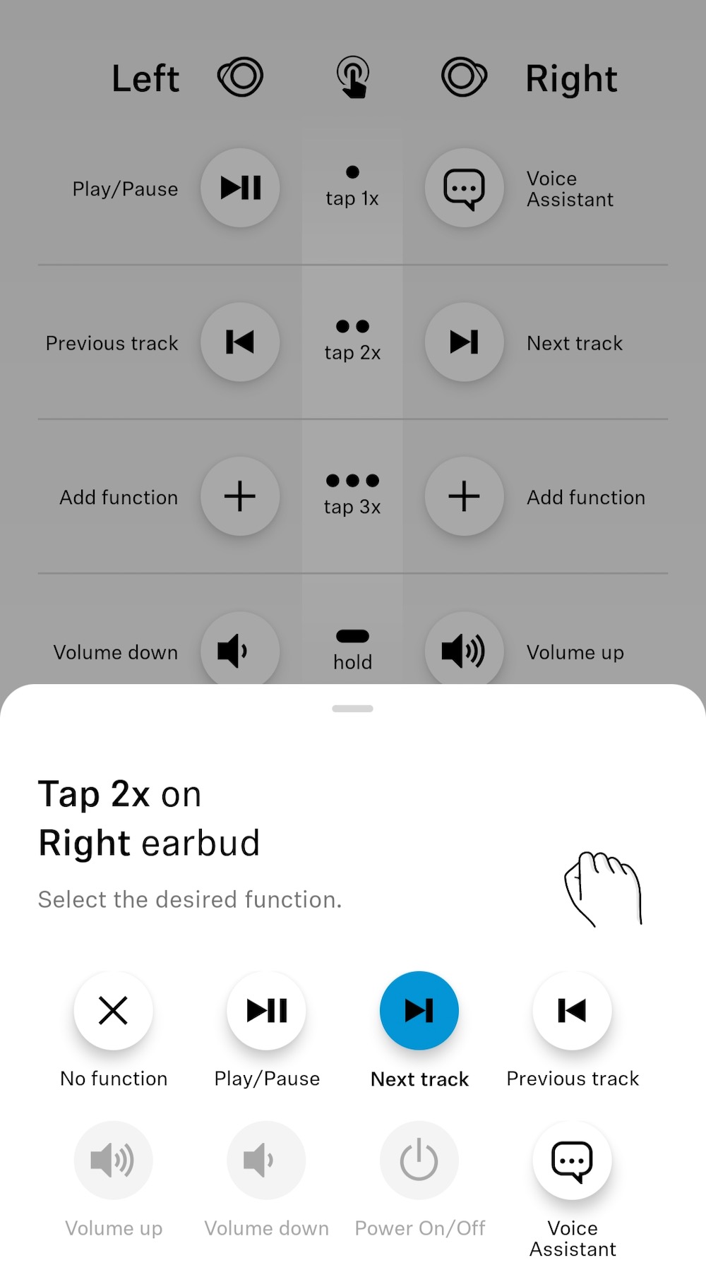 For example, if prefer two taps on the right earbud to turn the volume down instead of going to the next track you have that choice.
