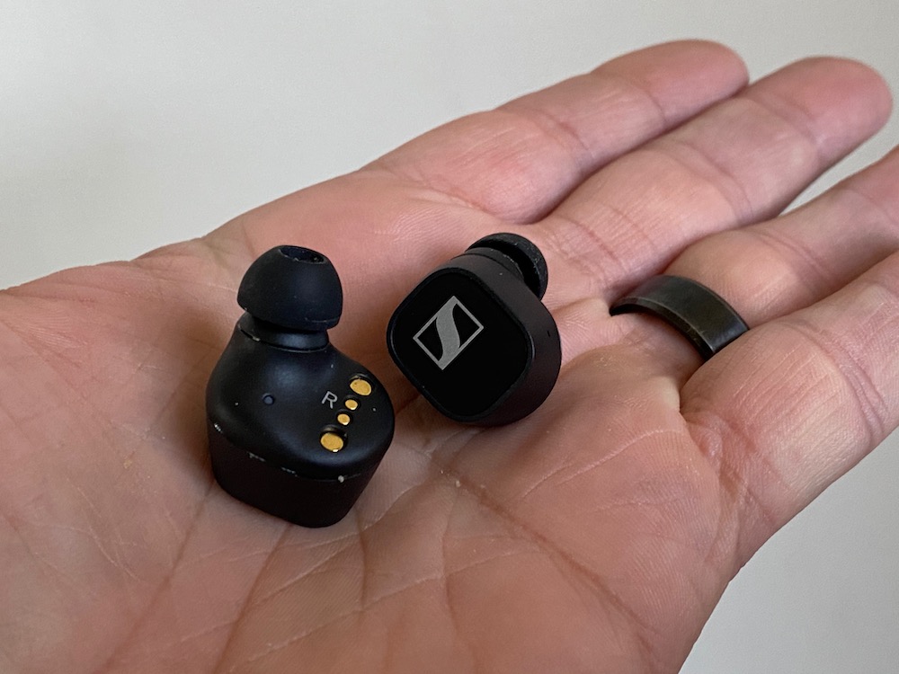 They have a minimal look with a button size panel on each where the unmistakable Sennheiser logo is located.
