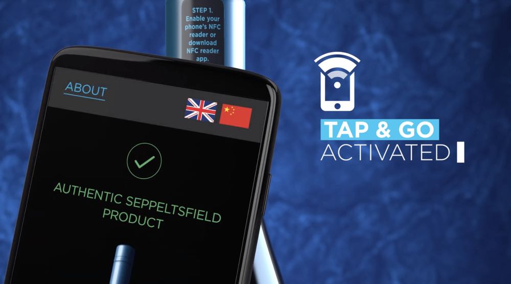Each bottle is embedded with microchip and a label with instructions on how customers can authenticate their purchase.