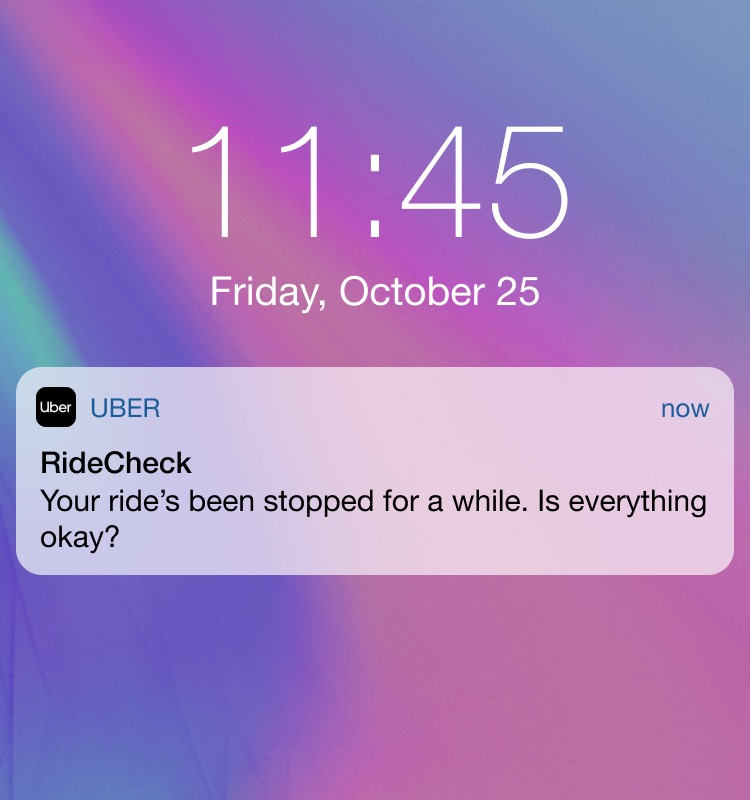 When RideCheck is initiated both the rider and driver will receive a notification to ask if everything is OK.