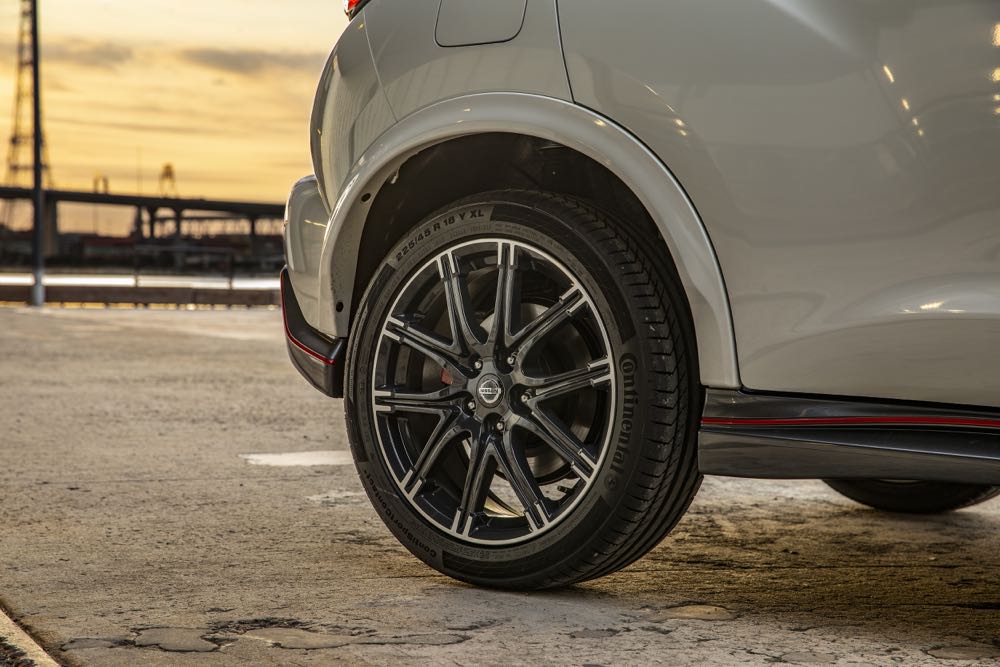 The Nissan Juke NISMO RS includes an aero package featuring bespoke front and rear bumpers along with side skirts and a roof spoiler.
