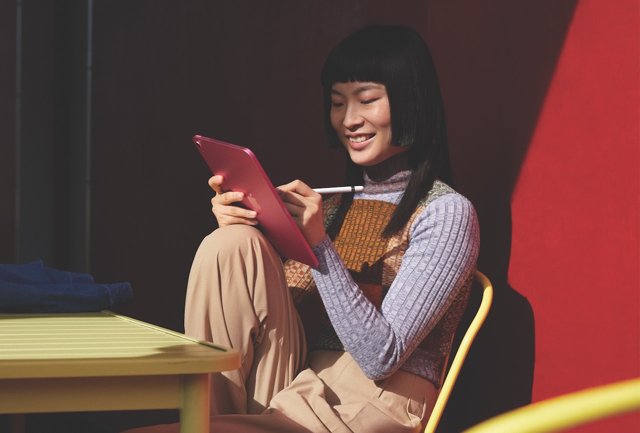 The new all-screen iPad is available in four finishes – blue, pink, yellow and silver.