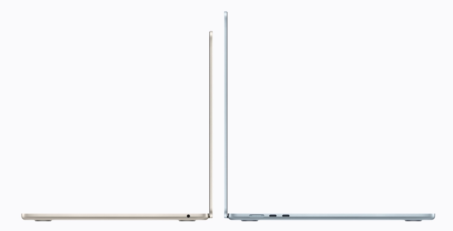 The MacBook Air will be available in 13.6-inch and 15.3-inch with Liquid Retina displays with up to 500 nits of brightness and the ability to display a billion colours.
