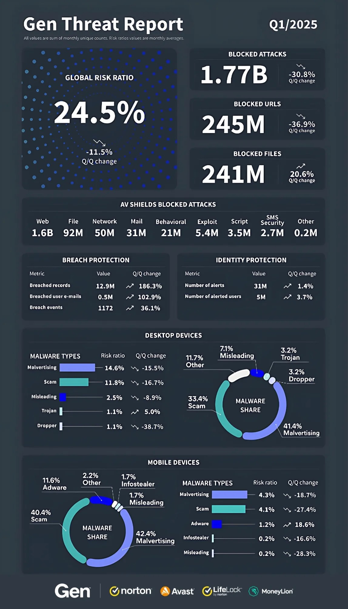 More than four million users were protected by Gen from Scam Yourself Attacks where users, through complex deception, are manipulated into infecting their own devices.