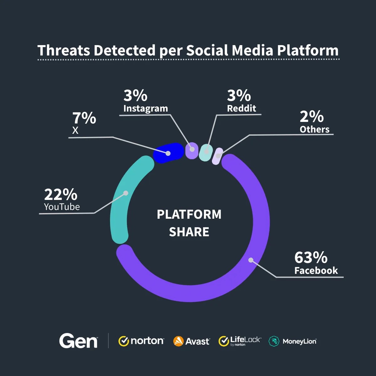In Q1 2025, 63 per cent of all social media related threats were carried out on Facebook followed by YouTube at 22 per cent.