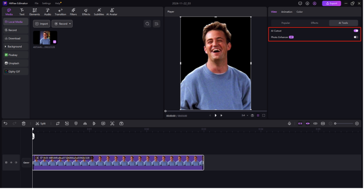 - Let Edimakor to analyze your video. The AI will automatically detect and isolate the subject from the background.