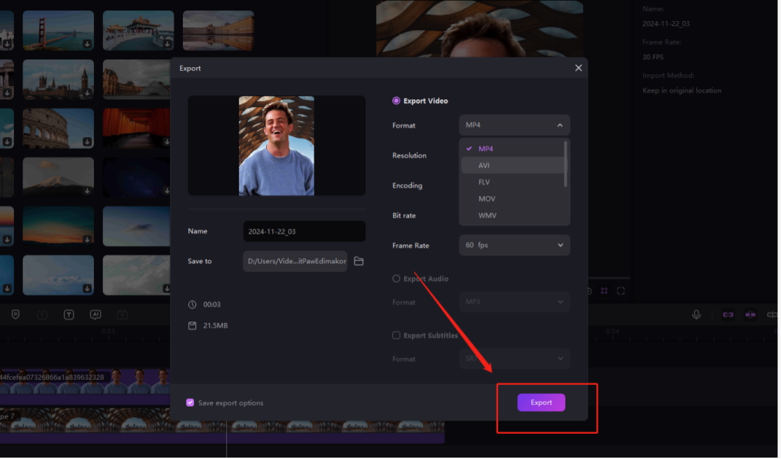 - After confirming the changes, export the video. Choose the format and resolution that meet your requirements.