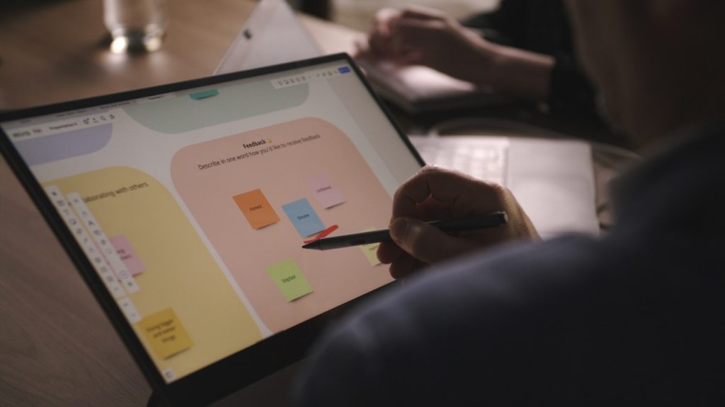 So instead of using it as a second screen, it can be used as a drawing tablet for personal use or as a virtual whiteboard in the middle of a video call to provide real-time feedback on collaboration tools auto mark-up documents.