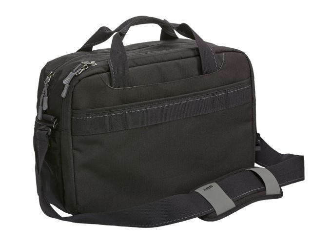 There are handles that can be used to carry the bag like a briefcase and these can be easily tucked away when not in use.