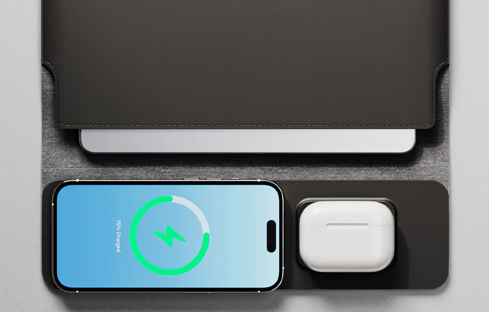 The Journey NEXA laptop sleeve can actually do a lot more than just protect your laptop – it can also double as a mouse pad and even wirelessly charge your phone and earphones case.