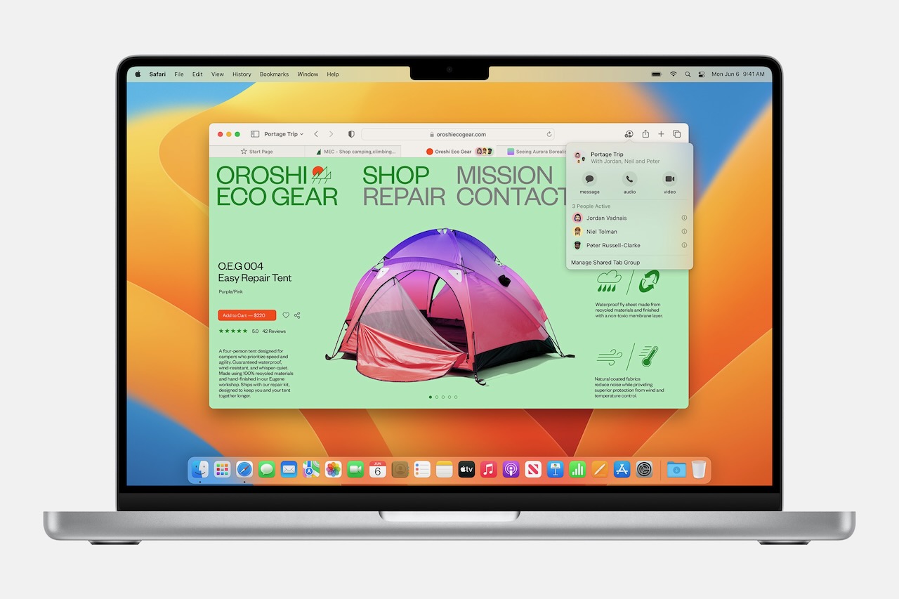 The Safari browser has been improved with new features including shared tab groups to allow users to browse the same sites together.