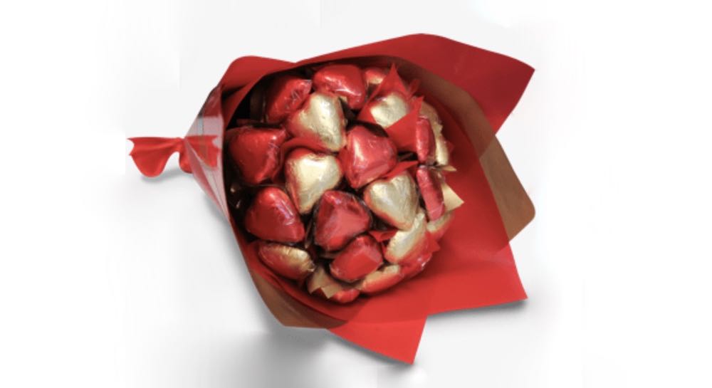 For $58, forgetful blokes can stay out of the doghouse by ordering a unique bouquet of two dozen chocolate hearts which can be delivered within three hours of purchase.