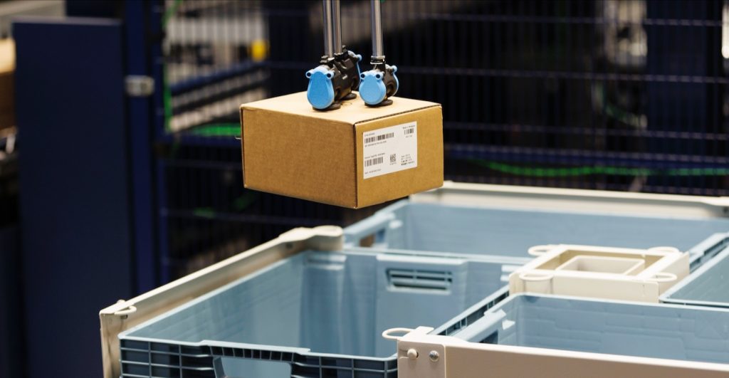 Blue Jay is a set of robotic arms which can help employees with reaching and lifting to fulfil an order.
