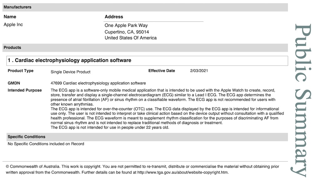This comes a month after the TGA approved the Irregular Rhythm Notifications for Apple Watch with the ECG a natural follow-on which has only now been officially approved.