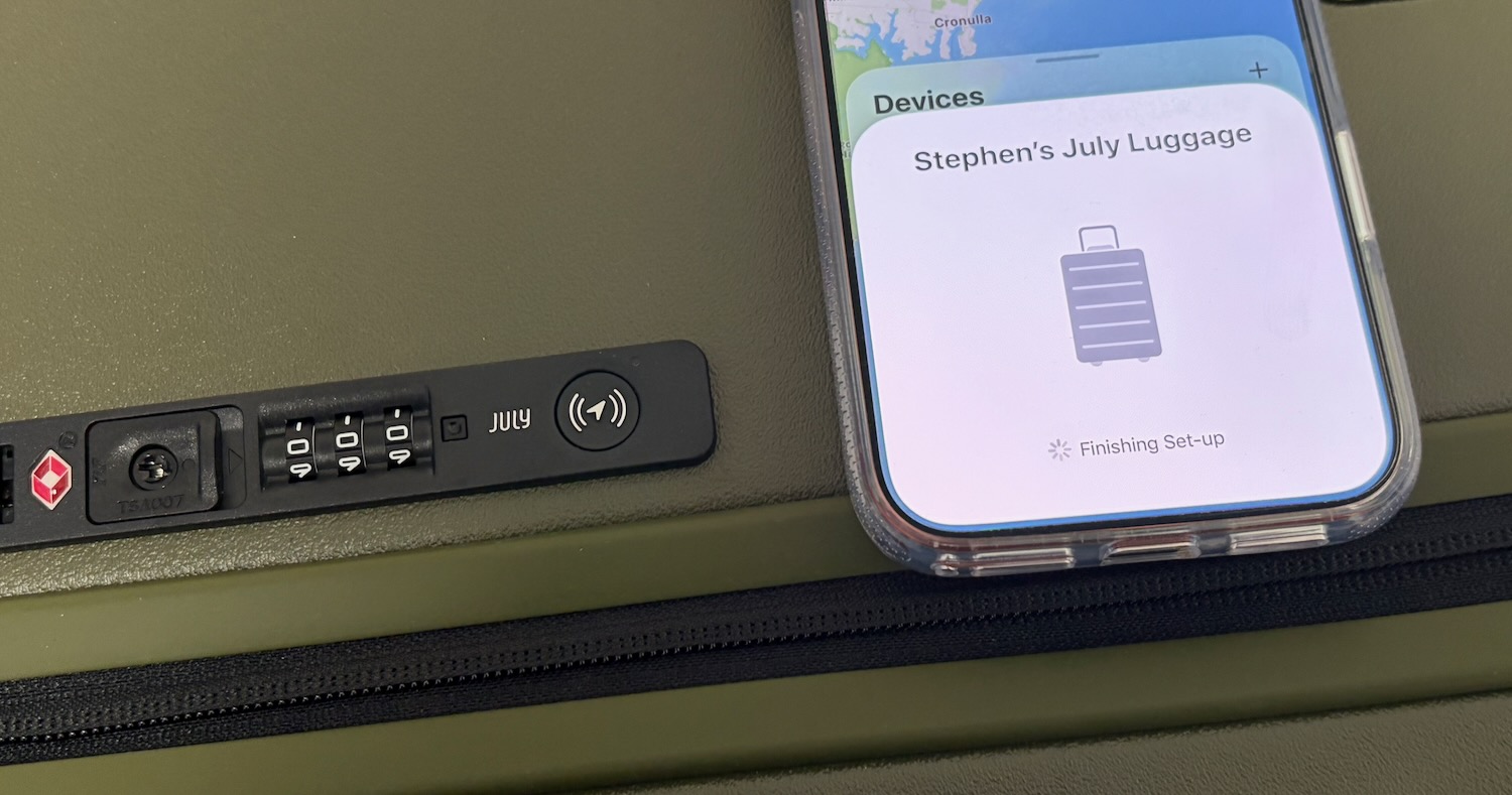 In the Find My app you go to devices – click the + button and choose “Other Item” and the July suitcase appears in the list.