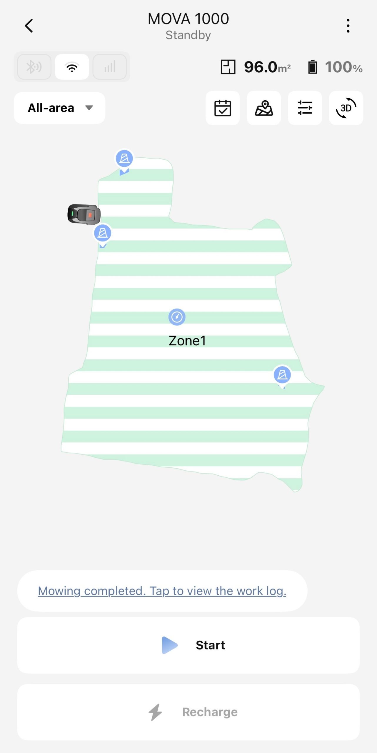 Next you have set the zone for the MOVA 1000 and this is achieved by driving the mower like a remote control car using the app around the edges of the mowing area.