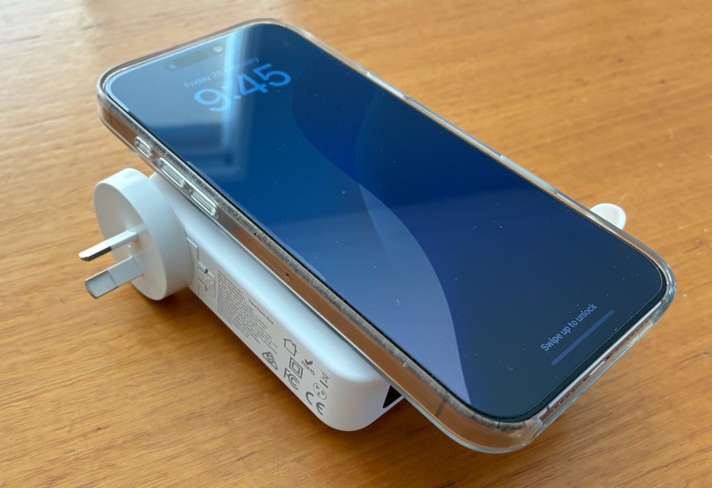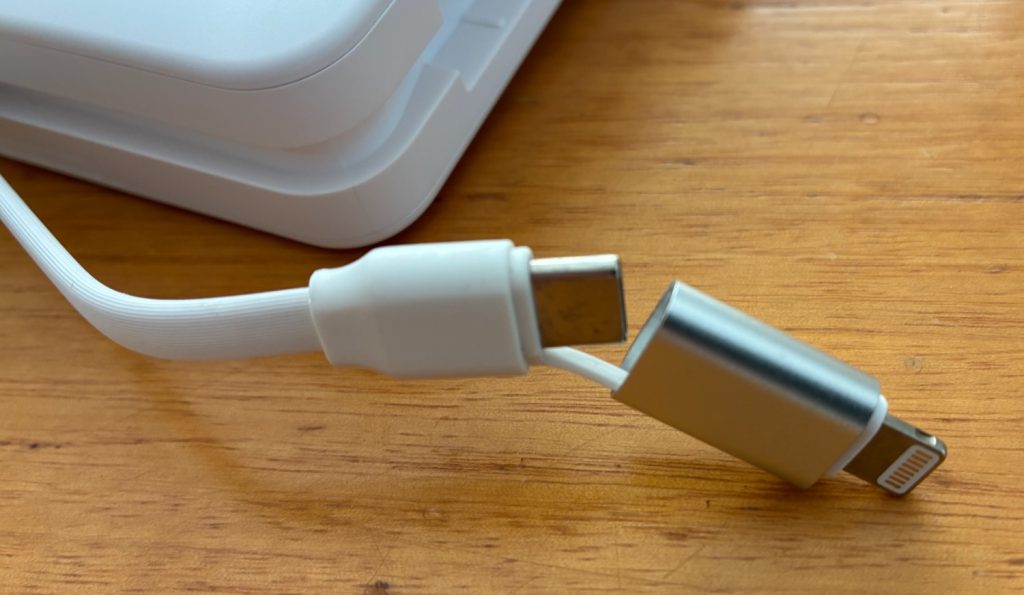 There is also a cable that unfolds from the side which has a dual head plug – one is Lightning to charge the older iPhones and USB-C which can charge just about everything else.