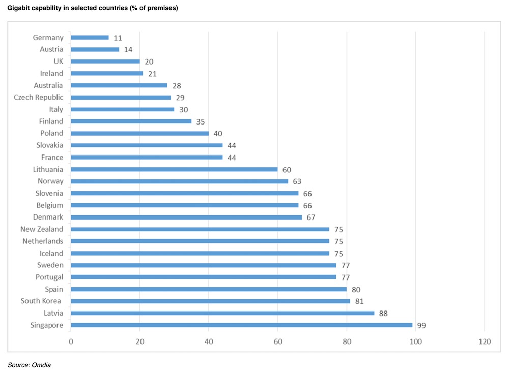 “Unlike many of our trading partners Australia has not adopted an aspiration to be a Gigabit enabled nation,” said Stephen Myers, principal consultant, OMDIA.