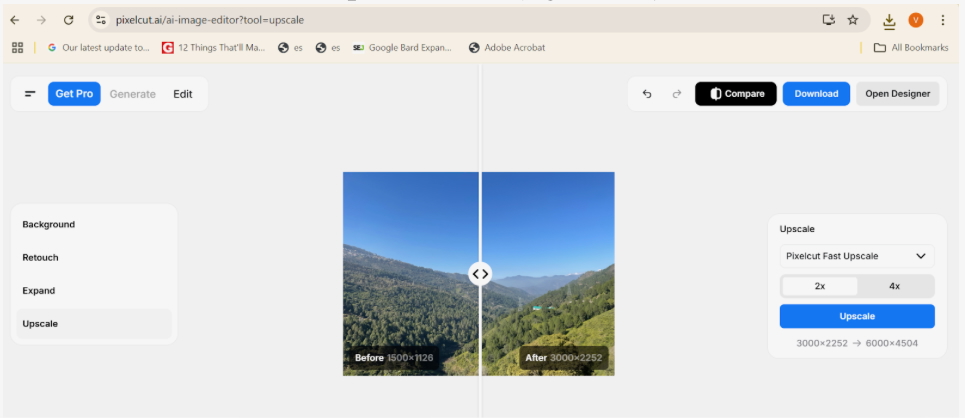You can use AI-based image upscaler tools like Pixelcut, Let’s Enhance, Freepik Upscaler, VanceAI, etc., which use AI to refine the quality and resolution of your images, making every pixel pop. These tools upscale your images by preserving essential details and textures while minimizing noise and artifacts. Here’s how to upscale image quality by using Pixelcut:
