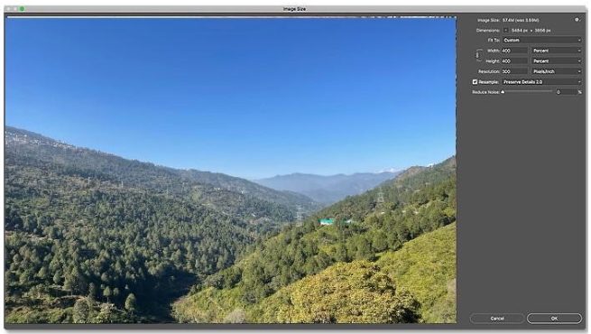 - Increase the dimensions gradually and adjust the Reduce Noise slider as needed. Click OK.