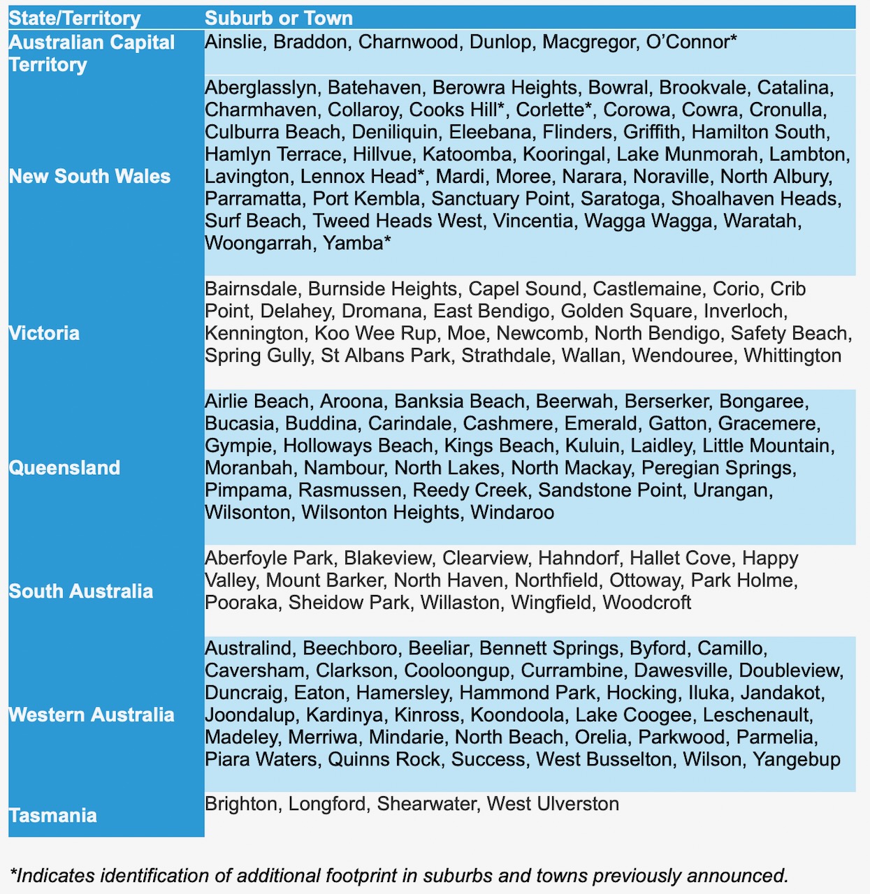 The latest fibre extensions will include eligible premises in the following suburbs and towns: