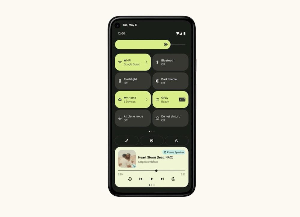 You’ll also be able to choose your wallpaper and the system will automatically determine which colours are dominant and which ones are complementary and apply them across the entire OS including the notification shade, the lock screen, volume controls and more.