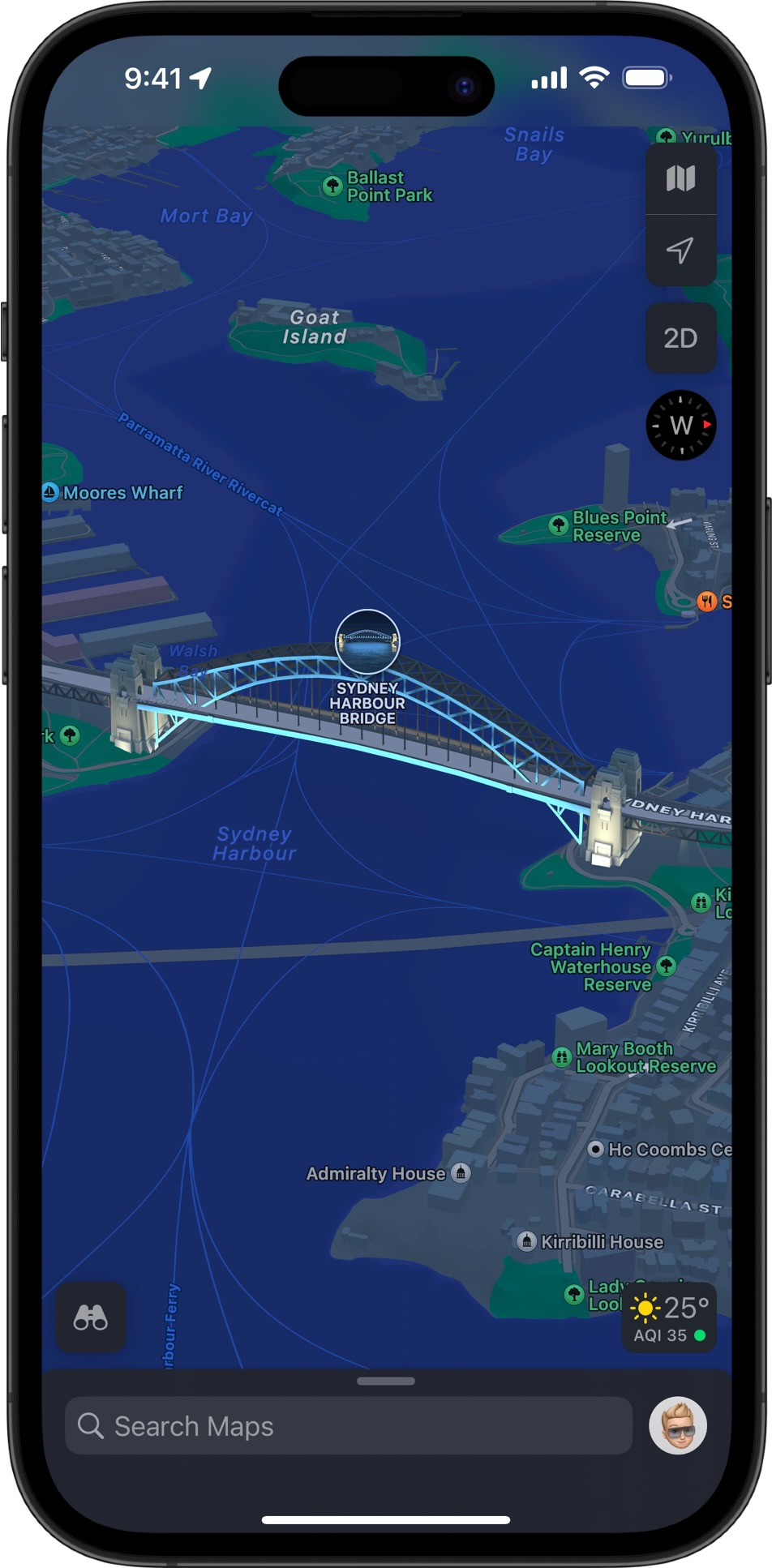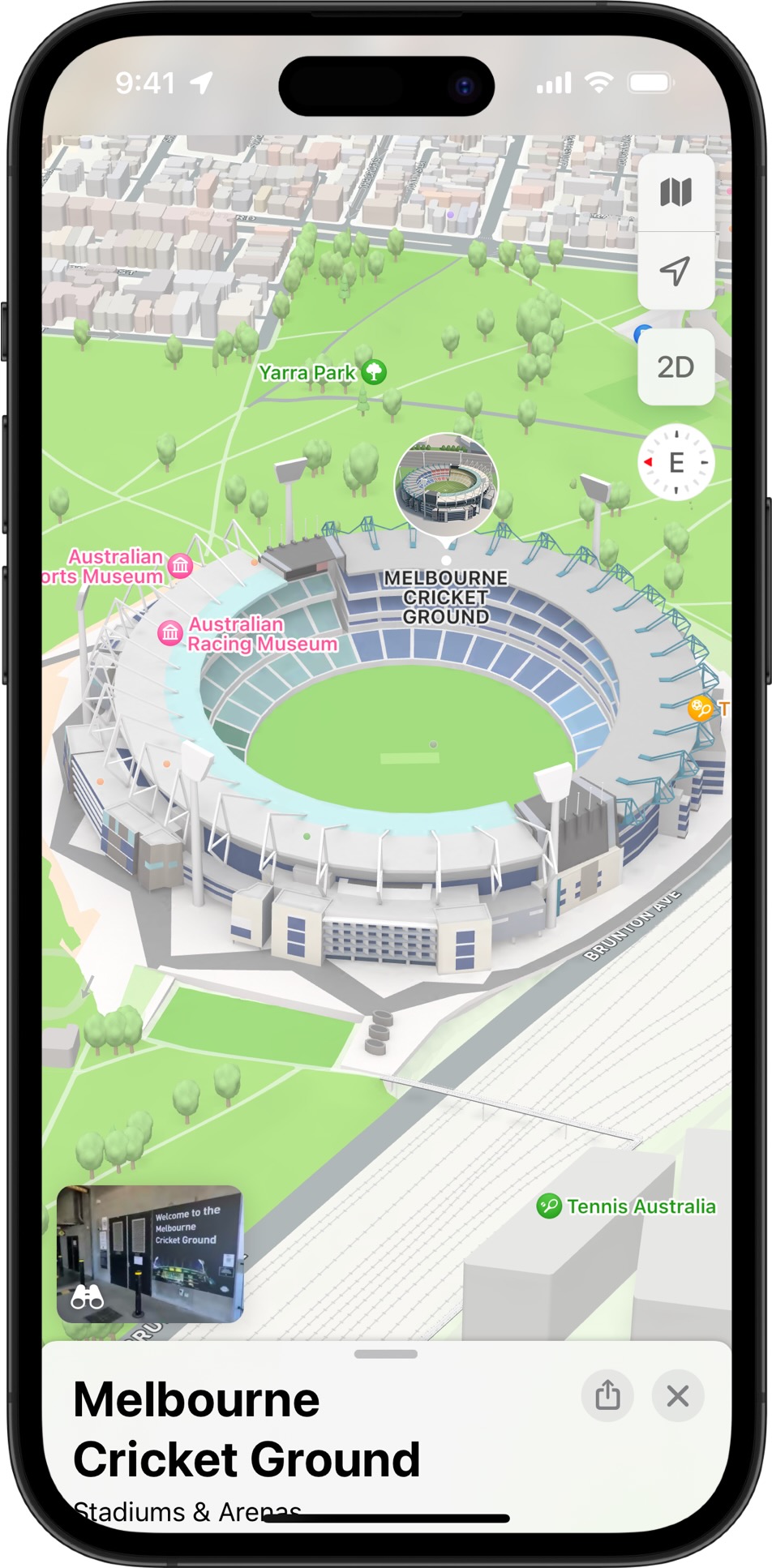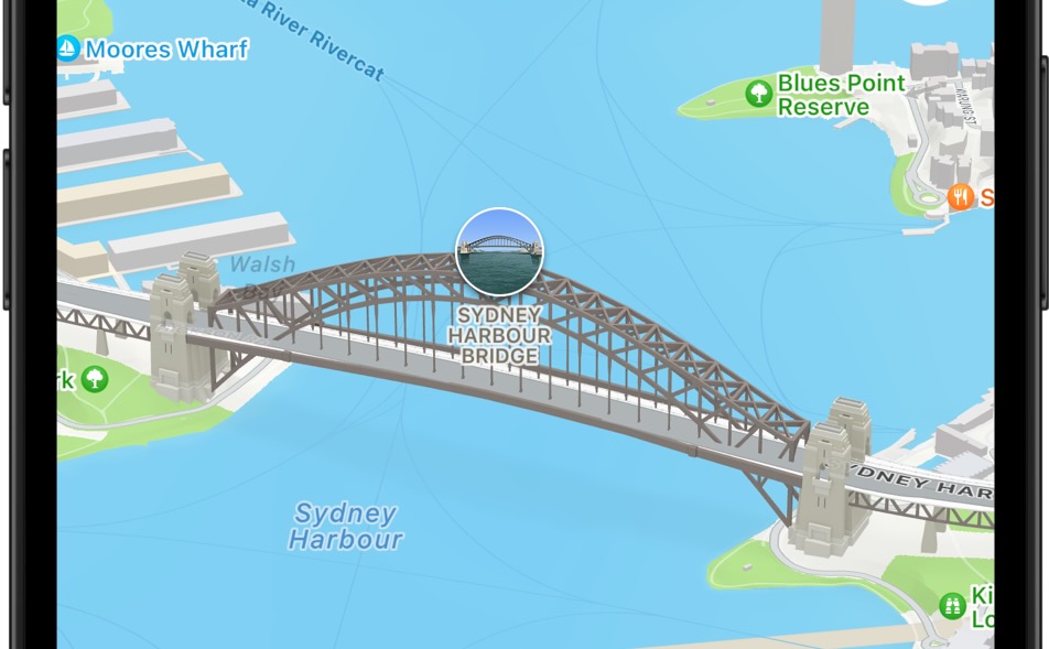 And in typical Apple style, Maps has enhanced landmarks like the Sydney Cricket Ground, the Sydney Harbour Bridge and Melbourne with a new level of detail and accuracy.