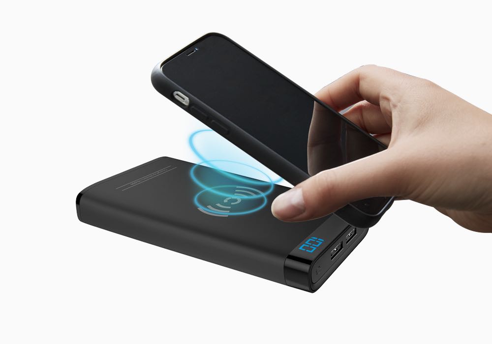 Users can rest the phone on the side of the power bank for fast Qi charging or use one of the two USB ports.