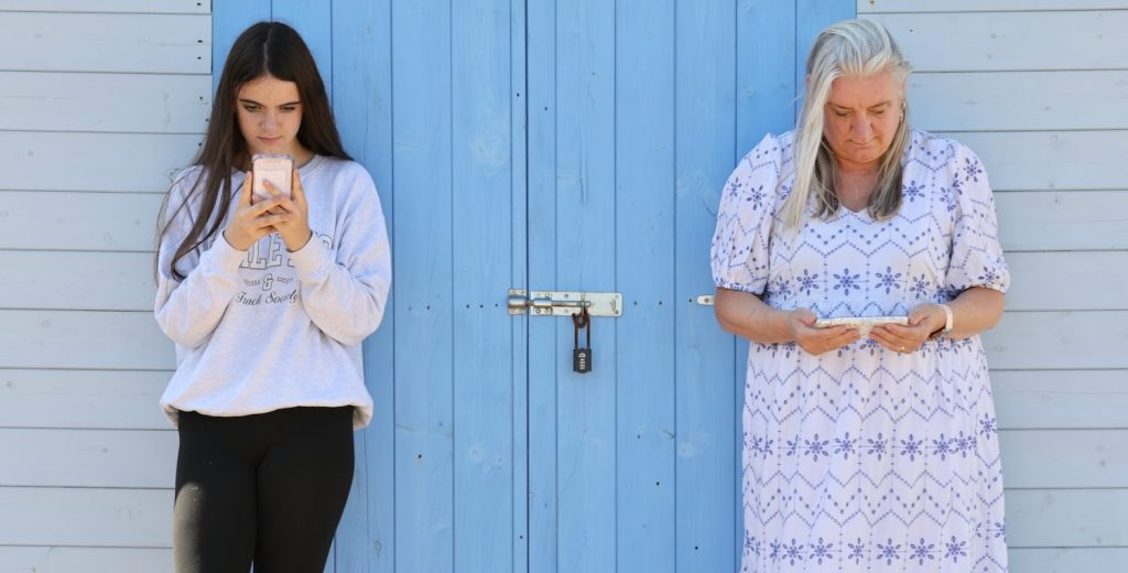 Alison Winsborough and her daughter Edie, 12, with their smartphones.
