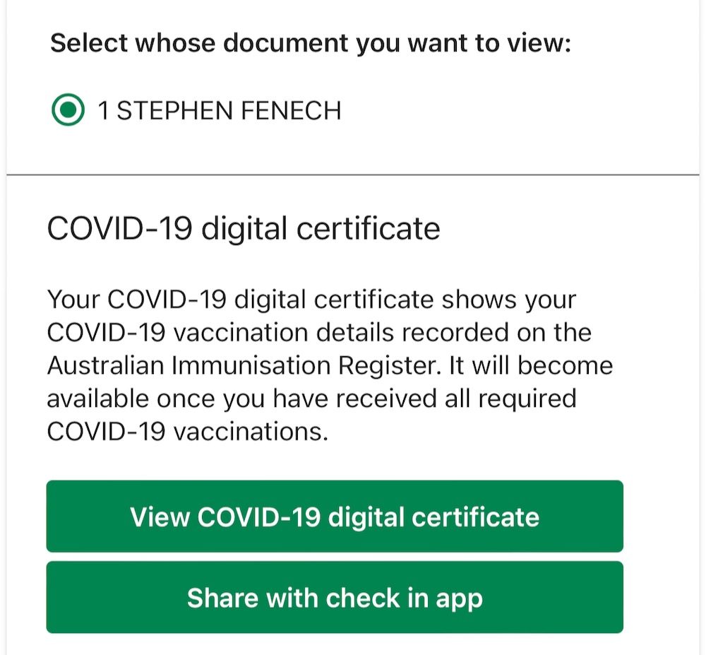 It’s the same thing with the NSW digital drivers’ licence – these are just additional security measures so that no one can fake the certificate or licence and they can’t just show a screen shot.