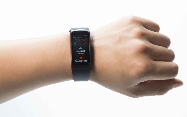 The Gear Fit2 is a wrist band that has embedded GPS and a heart rate monitor to provide instant feedback on the user’s workout.