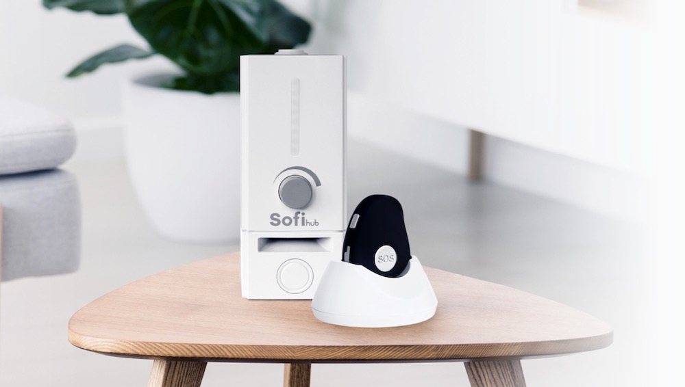 The in-home solutions include the Sofihub Home which looks like a smart speaker and the keyring-sized Sofihub Beacon which has an emergency button.