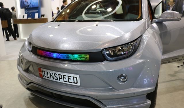 On the stand at MWC in Barcelona was a self-driving connected concept car that had a large touchscreen and a steering wheel that can alternate between the left side of the car and the right side of the car so the occupants can decide who will be driving.