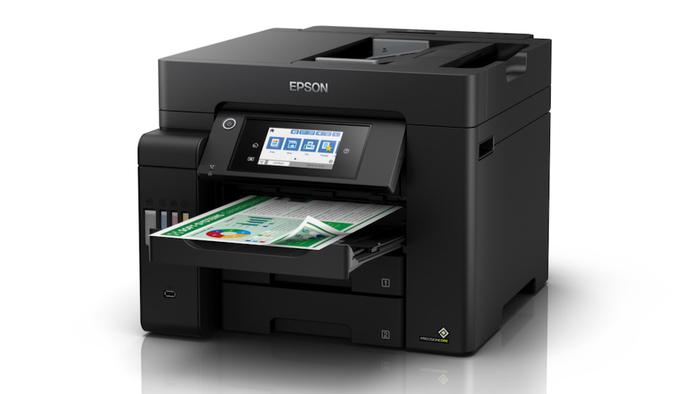 The Epson ET5800 has a 500-sheet paper capacity, a specialty paper feed as well as a 4.3-inch colour touchscreen to easily navigate the menu system.