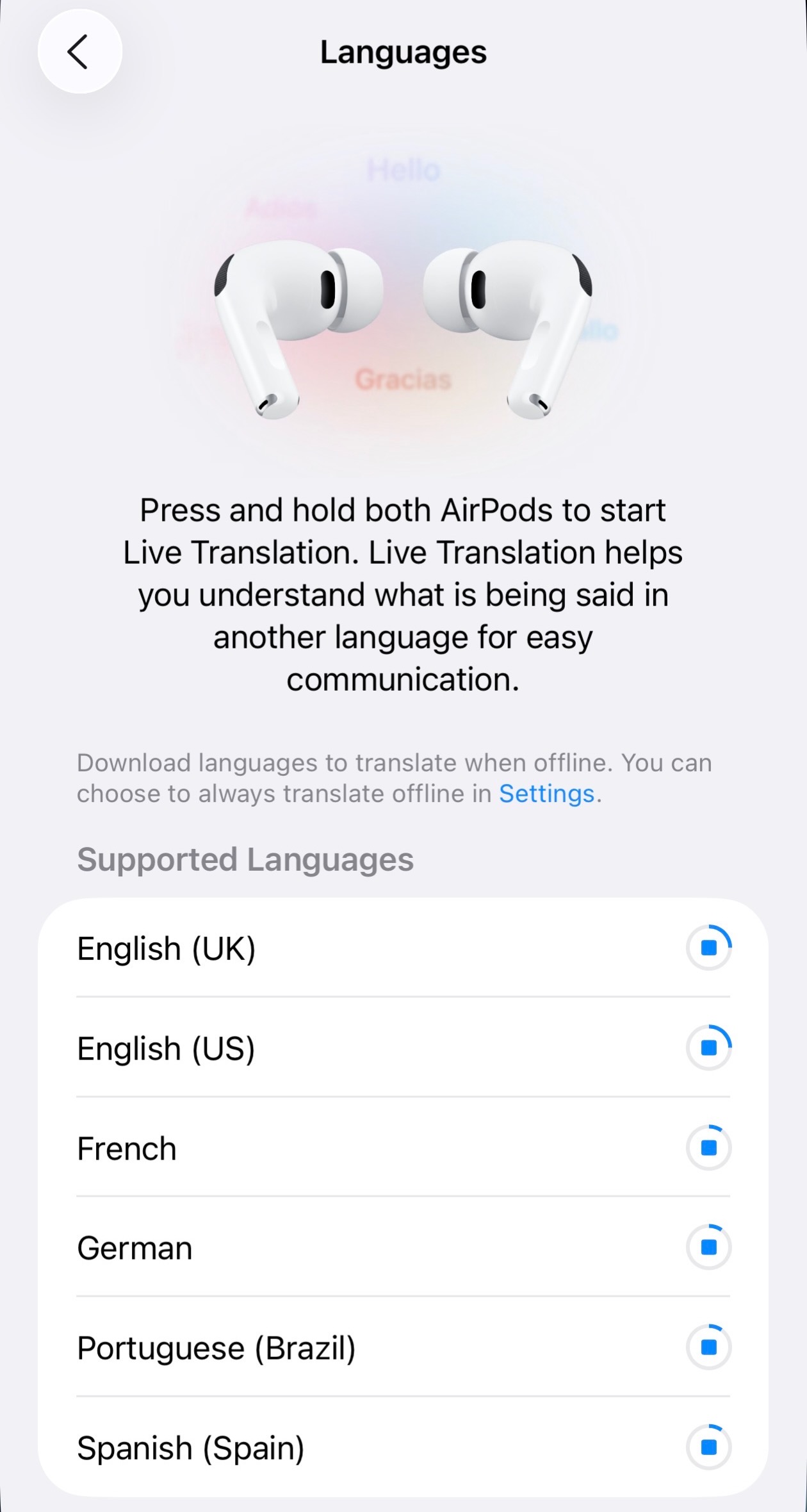 The impressive new feature is Live Translation which allows users to hear real time conversations translated in your ear in English.