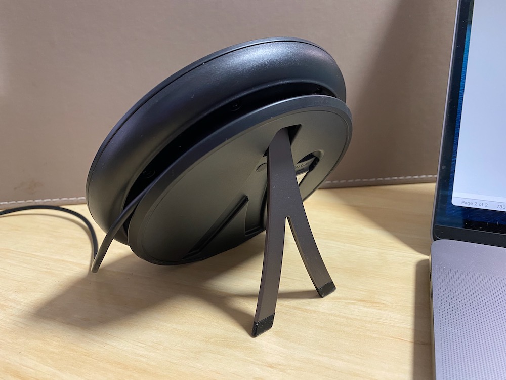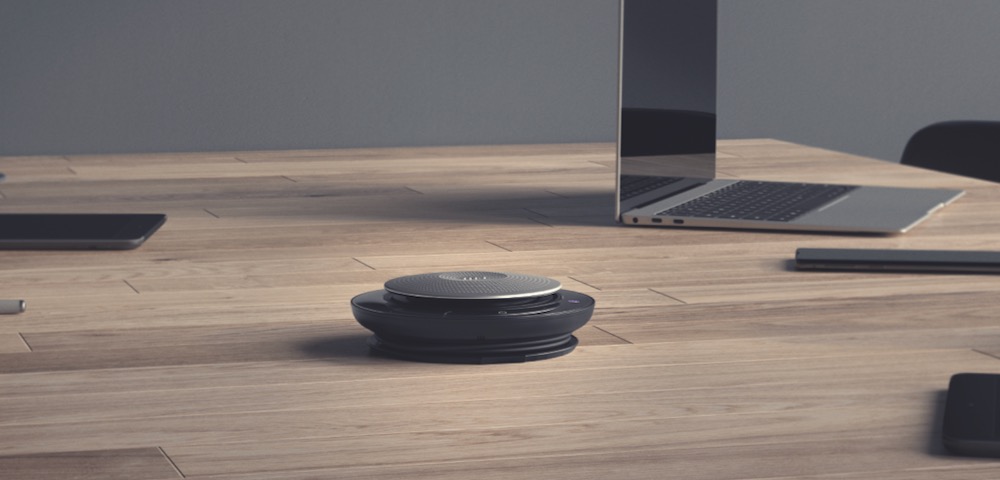 The circular device connects to a PC, laptop or smartphone via Bluetooth and offers a clear and crisp audio channel whether it’s a phone call or a video conference.