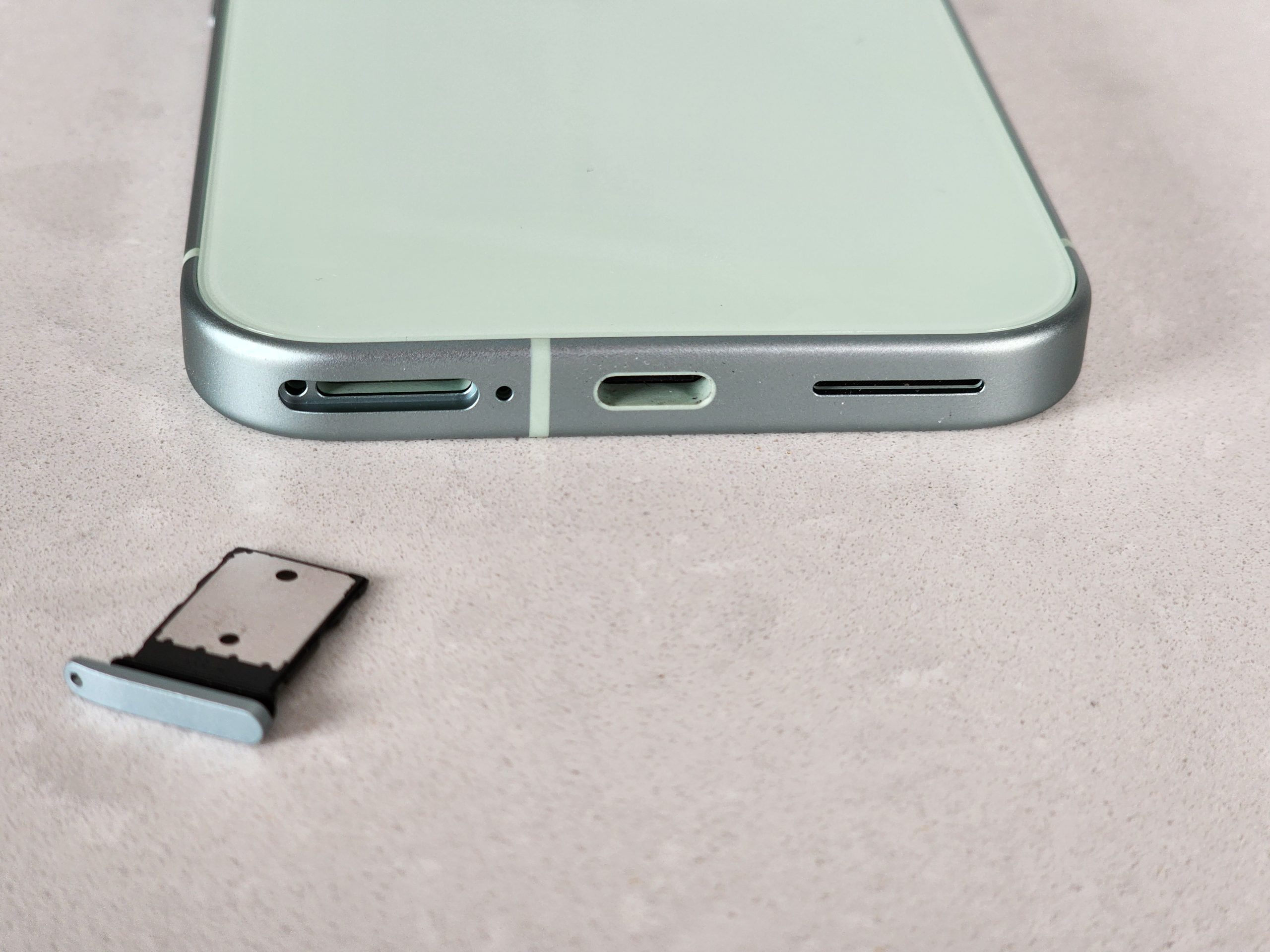 Google hasn’t changed the button placement on the Pixel 9, with the volume rocker and power on the right as usual, with the SIM Tray, USB-C port and speaker on the bottom.