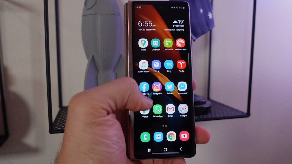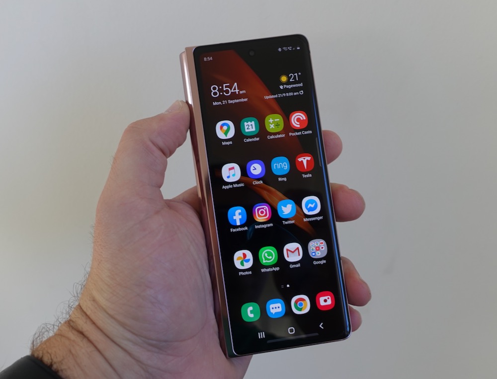 The big drawcard of the Samsung Galaxy Z Fold2 is the ability to multi-task and have up to three apps running on the main screen.
